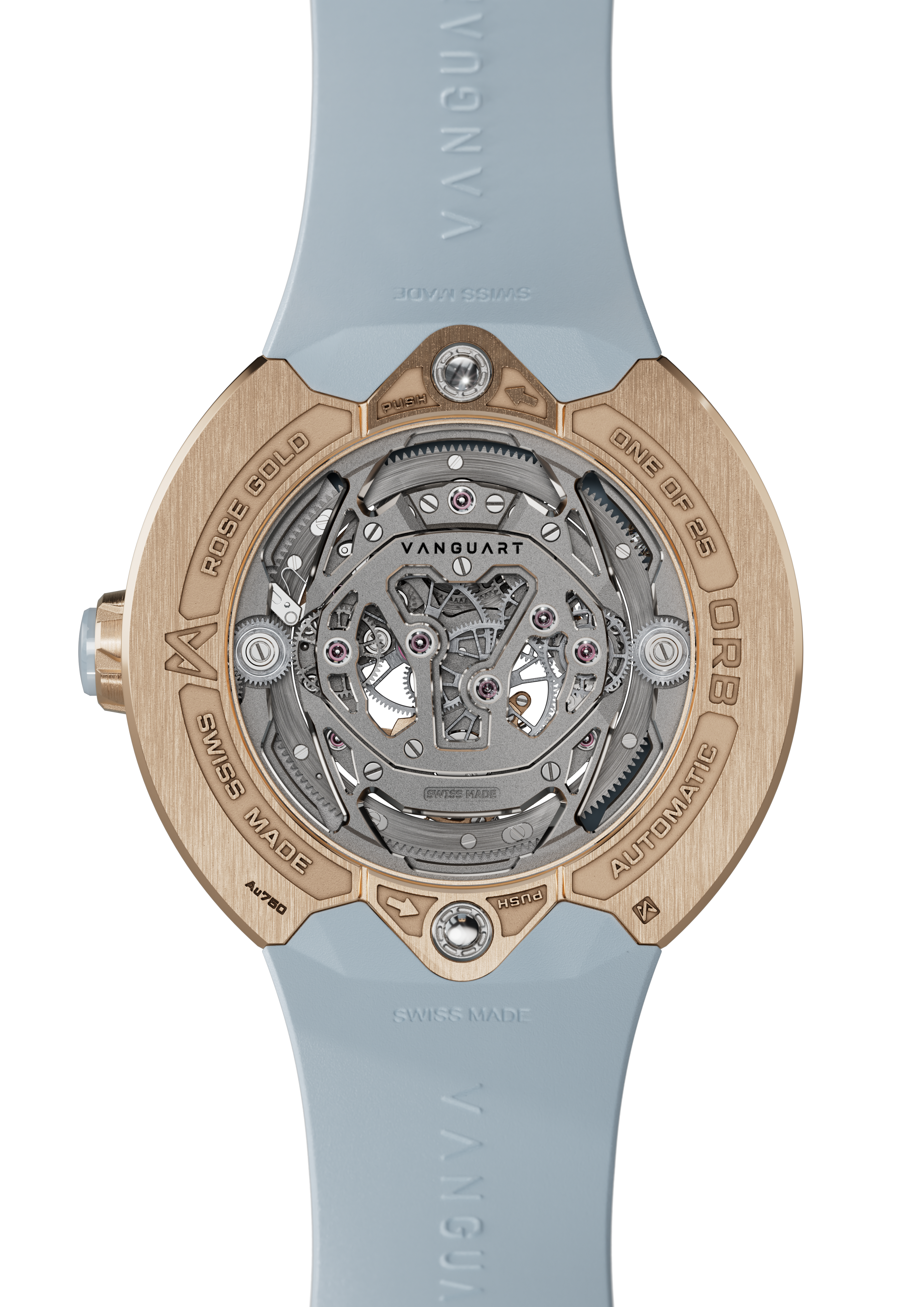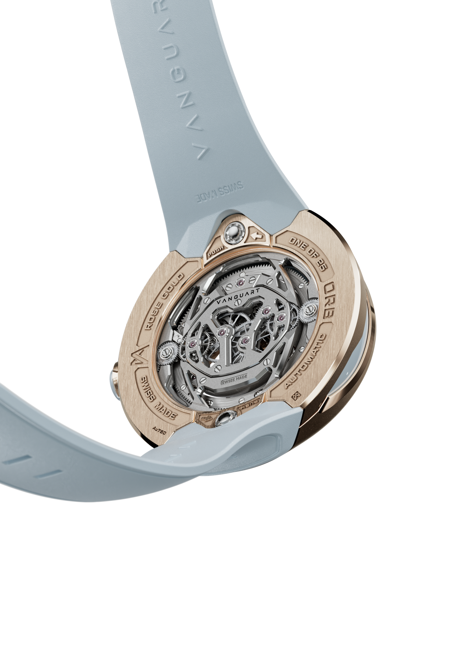 وتنطبق المعايير ذاتها على أساور ساعة Orb ونظام التحرير السريع الخاص بها. ونجحت Vanguart بتطوير هذا النظام الذي يتم تفعيله من خلال الضغط على زرٍ مخفي على الغطاء الخلفي للعلبة، يسهل الوصول إليه، ما يمكّن مرتديها من تبديل السوار في أي وقت، مع ضمان أعلى مستويات الأمان.
