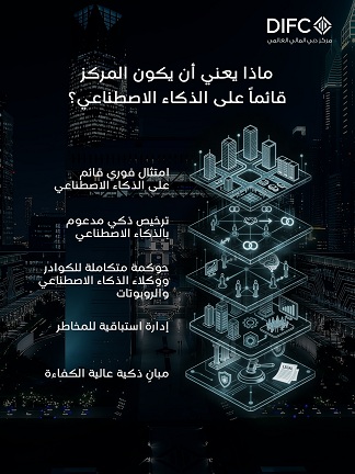 يرتكز هذا التحول النوعي للمركز على ريادة دبي في مجال الابتكار، وبنيتها التحتية الرقمية المتقدمة، ومرونة أطرها التنظيمية، وترابطها العالمي. ويعتبر مركز دبي المالي العالمي بالفعل المركز المالي الرائد في منطقة الشرق الأوسط وأفريقيا وجنوب آسيا، حيث يستضيف آلاف الشركات المسجلة النشطة، ومنظومة متكاملة من المؤسسات المالية، ومديري الأصول، وشركات التكنولوجيا المالية، ومقدمي الخدمات المهنية. ومن خلال توافقه مع استراتيجية دبي للذكاء الاصطناعي والطموحات الوطنية للدولة في مجال التكنولوجيا المتقدمة، سيعمل المركز على تحويل الأبحاث إلى أطر تنظيمية، وسيحوّل كذلك الابتكار إلى تطبيقات عملية، والسياسات إلى بنية تحتية فعالة.